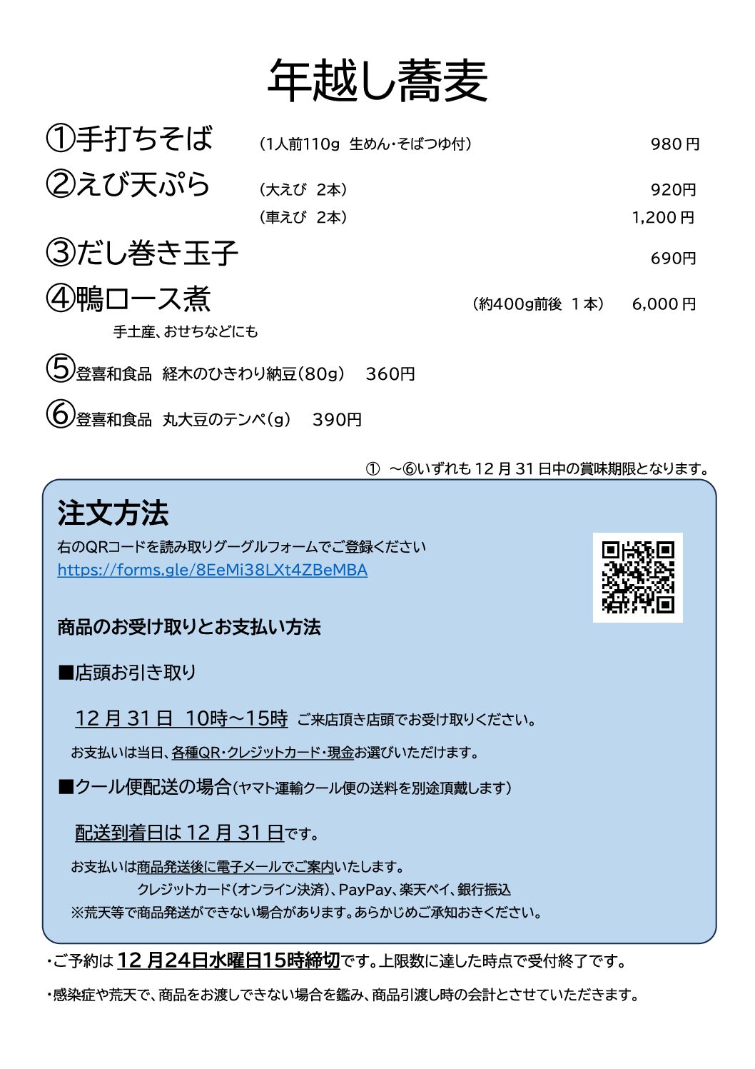 ご自宅用の年越し蕎麦のご予約を承ります。