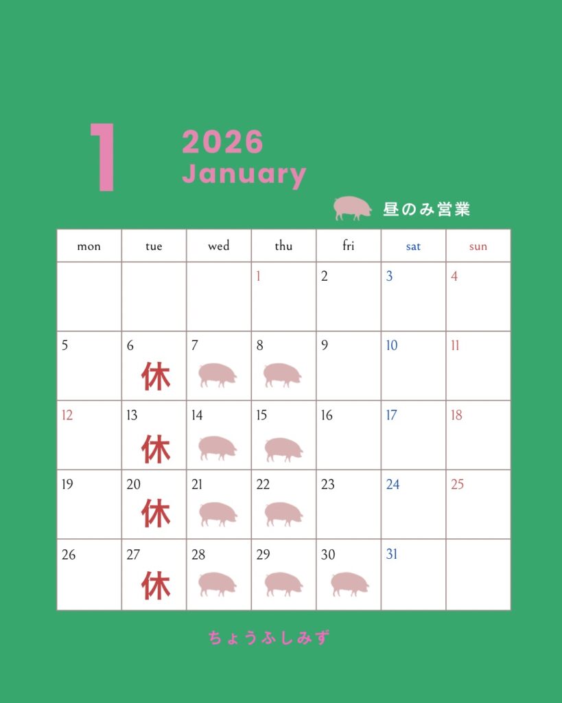 2026年1月の営業予定を更新しました。ご来店お待ちしております。